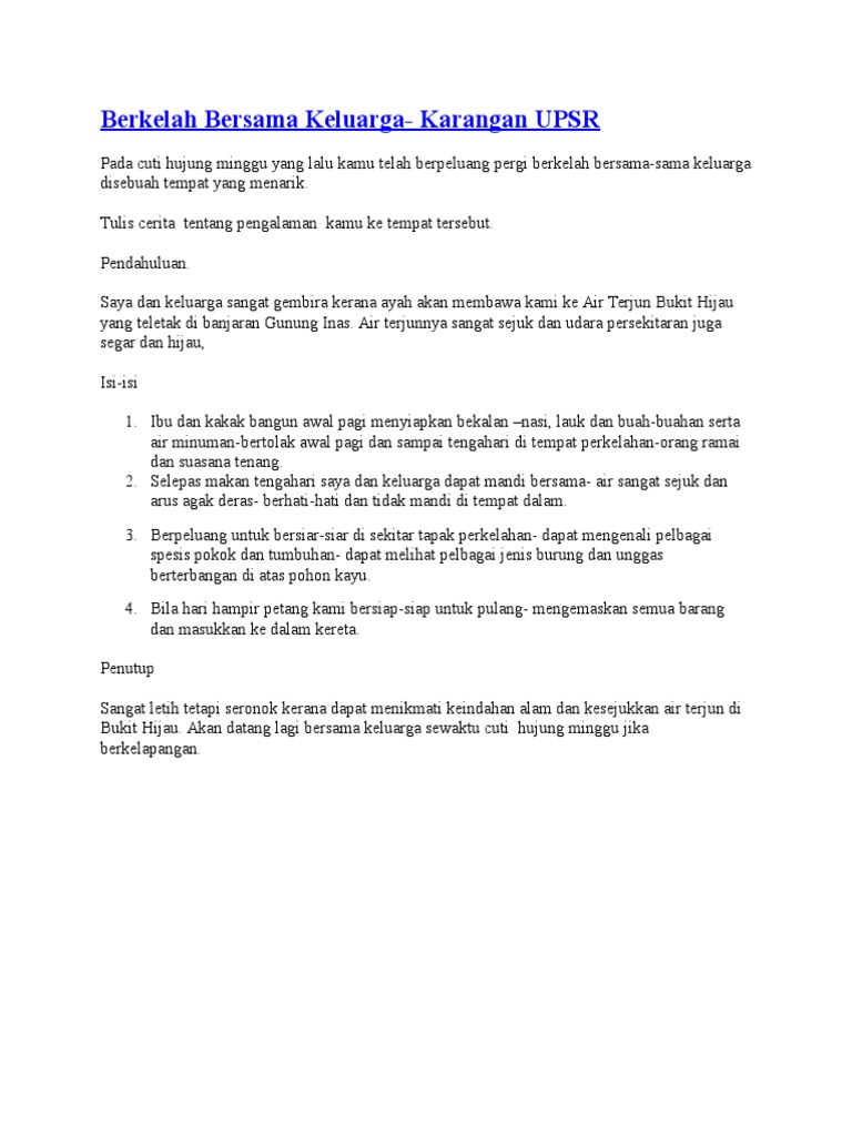 Berkelah Bersama Keluarga Tugasan Bahasa Melayu 6 Seroja Bakawali Cg Sam SKTB 2021 Pagi-pagi lagi aku sudah bersiap untuk mengikuti keluargaku berkelah di sebuah. Contoh karangan pengalaman bercuti bersama keluarga di melaka. Saya makan bersama keluarga di tempat yang telah disediakan.